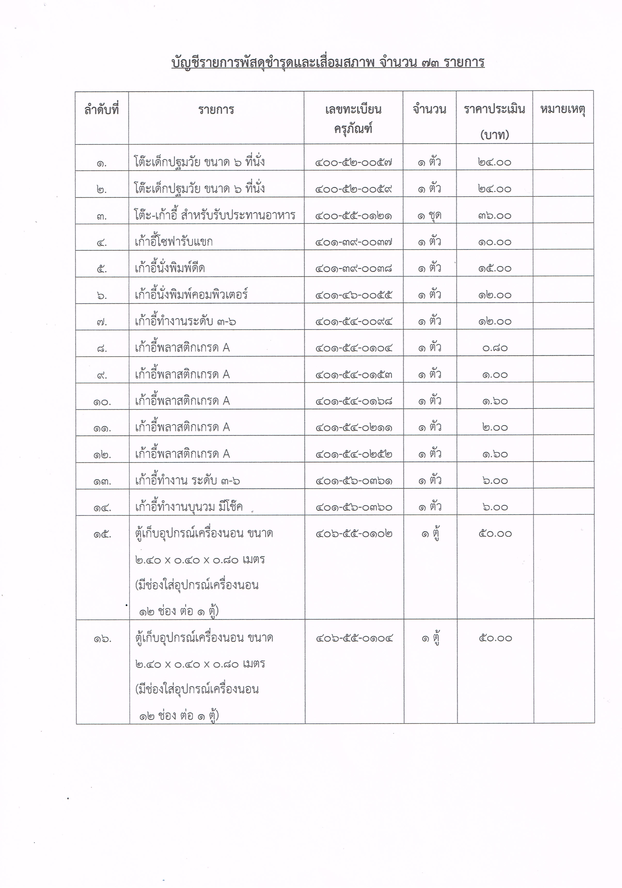 ประกาศเทศบาลตำบลบ้านฆ้อง เรื่อง ขายทอดตลาดพัสดุชำรุดและเสื่อมสภาพ จำนวน 73 รายการ